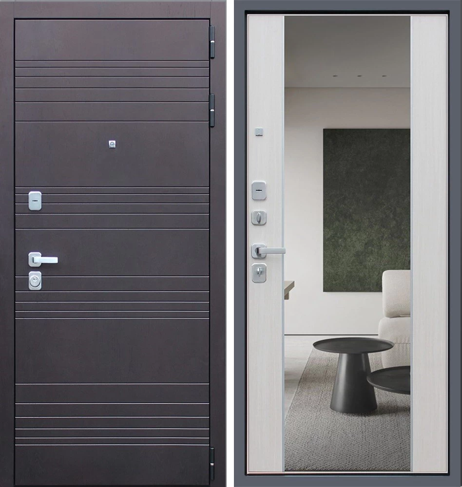 Надежная входная Дверь Дуэт с зеркалом премиум класса по цене 49 997 руб. Большая толщина стали защитит от проникновения в ваш дом, квартиру или коттедж. Используется очень качественная фурнитура: замки, цилиндры, ручки, защелки. Покрытие и отделка двери изготовлено под внимательным контролем производителя. Дверь имеет долгий срок службы и гарантию.