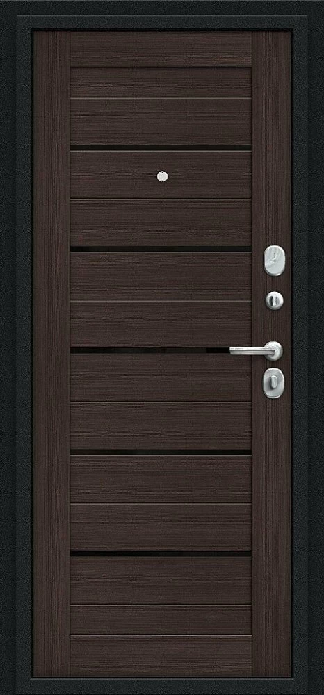 Надежная входная Браво Техно Kale Букле черное/Wenge Veralinga премиум класса по цене 36 997 руб. Большая толщина стали защитит от проникновения в ваш дом, квартиру или коттедж. Используется очень качественная фурнитура: замки, цилиндры, ручки, защелки. Покрытие и отделка двери изготовлено под внимательным контролем производителя. Дверь имеет долгий срок службы и гарантию.