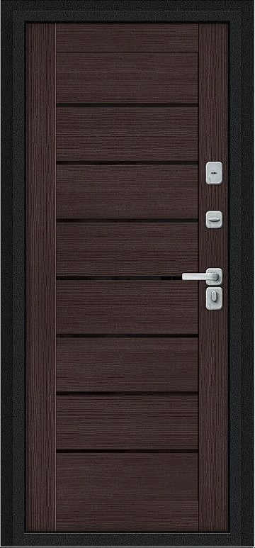 Дверь Браво Thermo Техно Д2/BChrome Букле черное/Wenge Melinga - недорогая эконом класса по цене 7 247 руб., отлично подходит для временной установки в квартиру под сдачу, строительство, ремонт. Не смотря стоимость, модель хорошего качества.