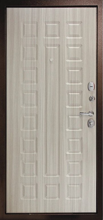 Надежная входная Дверь Рубикон 1 Медь Сандал белый премиум класса по цене 37 197 руб. Большая толщина стали защитит от проникновения в ваш дом, квартиру или коттедж. Используется очень качественная фурнитура: замки, цилиндры, ручки, защелки. Покрытие и отделка двери изготовлено под внимательным контролем производителя. Дверь имеет долгий срок службы и гарантию.